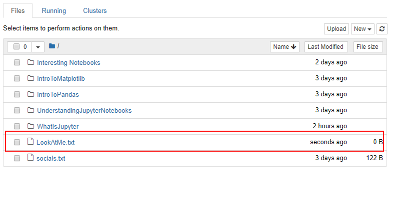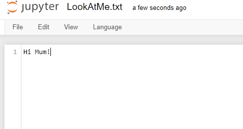Returning back to the Jupyter instance in your web browser, we can now see the file we have just created is visible within Jupyter.!