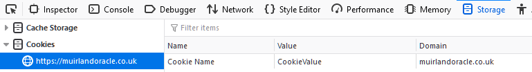 In the above image you can see a test cookie for a website. The important attributes "Name" and "Value" are shown. The name of a cookie is used to identify it to the server. The value of the cookie is the data stored by the server. In this example the server would be looking for a cookie called "Cookie Name". It would then retrieve the value "CookieValue" from this cookie.