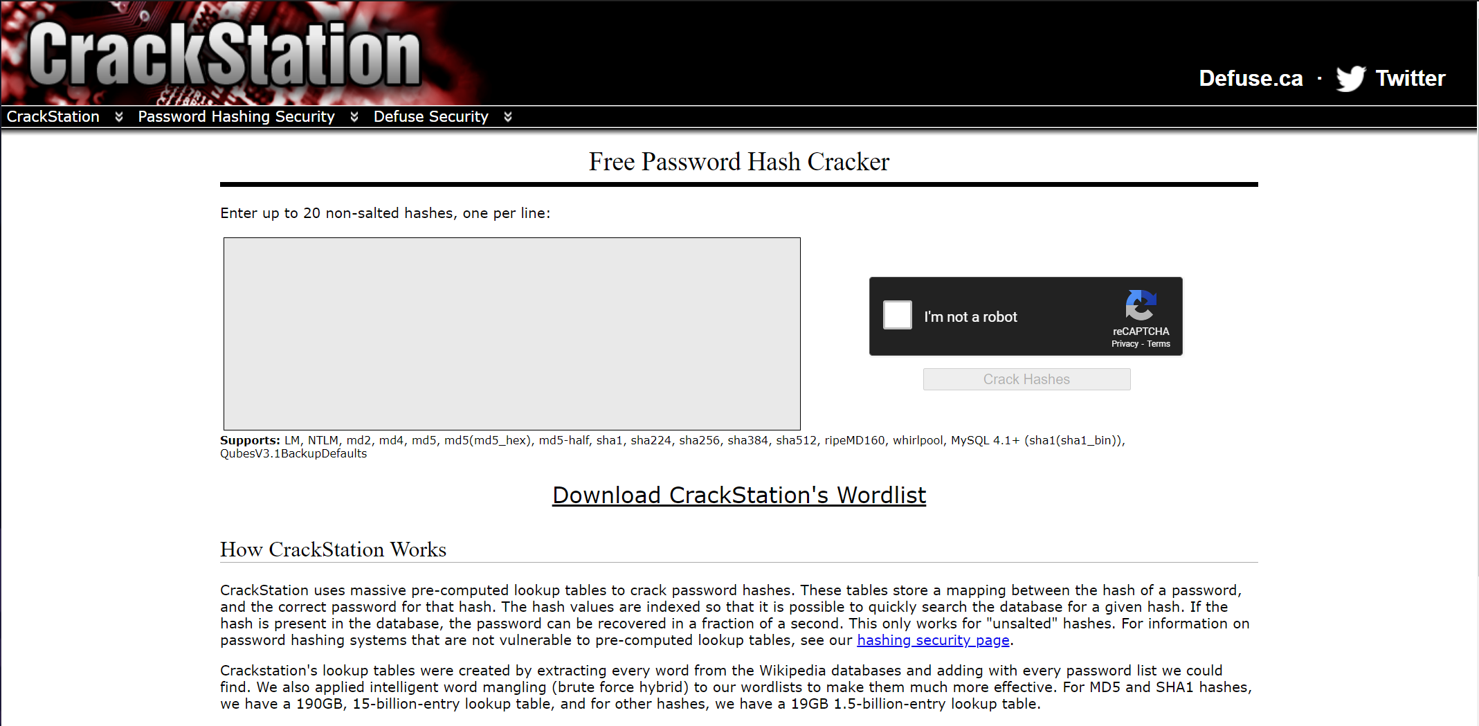 In the modern age of password cracking, weak passwords can often be cracked without any cracking at all! Many websites now exist with the sole goal of hosting rainbow tables - tables of previously cracked passwords. This allows us more than often to simply input a password hash and nearly instantly receive the cracked password. Some various sites that I find myself (Dark) commonly using, especially throughout the case of CTFs, include the following: