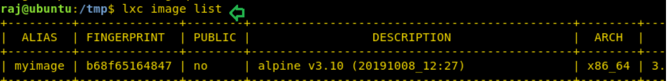 3. For the sake of this example, we'll be skipping close to the end (see the bolded bit above) by checking what images are readily available on the machine in question. We can do that via the following command: lxc image list
