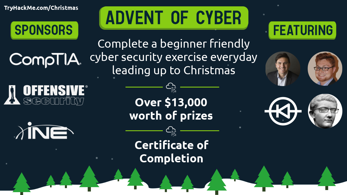 Get started with Cyber Security in 25 days, by learning the basics and completing a new, beginner friendly security exercise every day leading up until Christmas; an advent calendar but with security challenges and not chocolate.