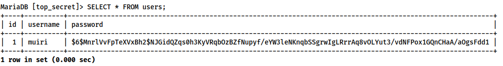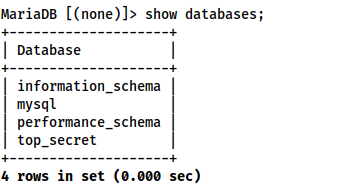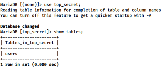 is the name of the target DB. We can then show all the tables in the database with show tables;