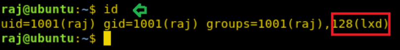 We can see in this case that the user is a member of the lxd group. Note, images from this section are from the source linked at the end with regards to additional information.