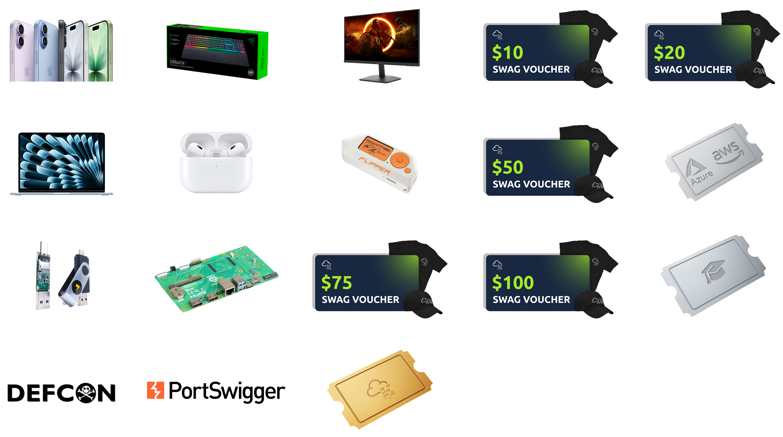 | 3 x DefCon Tickets | 20 x TryHackMe Swag Gift Cards ($100.00) |