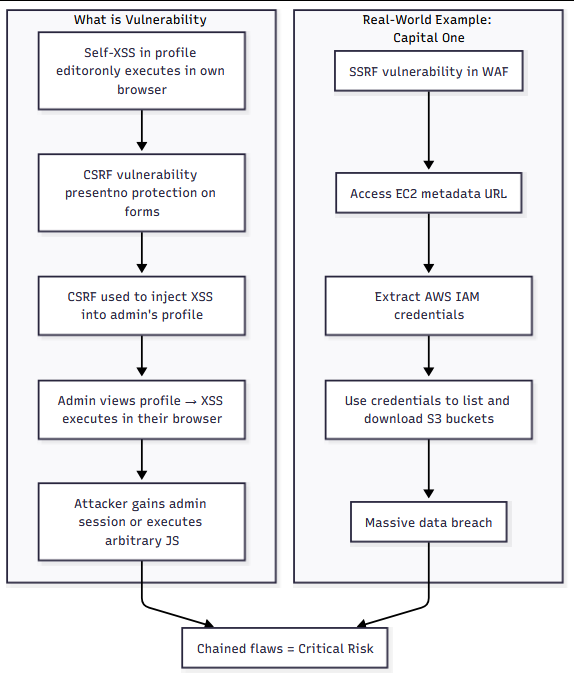 This is the essence of chaining: connecting lower-severity vulnerabilities to achieve something much more impactful.