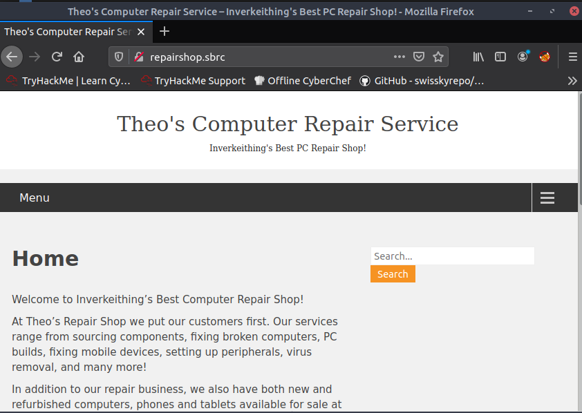 Open up the web browser in your AttackBox and navigate to:http://repairshop.sbrc