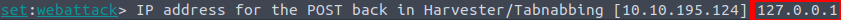 Now we have to enter the IP address of the server that we'll be hosting our cloned website on. To keep things simple we're just going to host it locally. Type 127.0.0.1