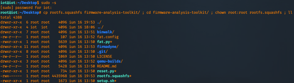Elevate your shell and copy rootfs.squashfs to firmware-analysis-toolkit folder and change the owner of the file to root.