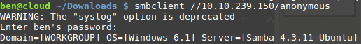 On most distributions of Linux smbclient is already installed. Lets inspect one of the shares.