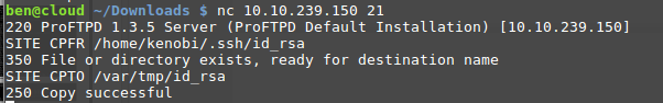 We're now going to copy Kenobi's private key using SITE CPFR and SITE CPTO commands.