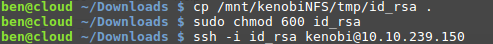 We knew that the /var directory was a mount we could see (task 2, question 4). So we've now moved Kenobi's private key to the /var/tmp directory.