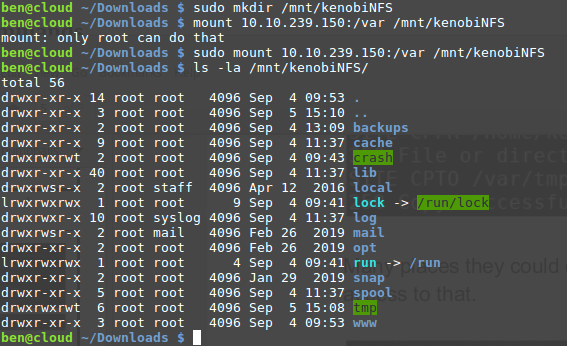 mount MACHINE_IP:/var /mnt/kenobiNFS