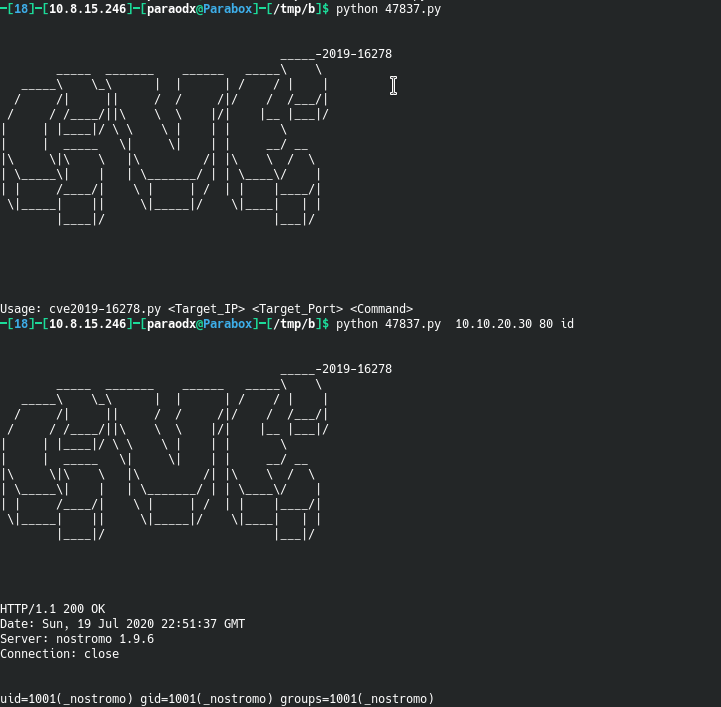 Note: When you find the exploit script, put all of your input in quotes, for example "id"