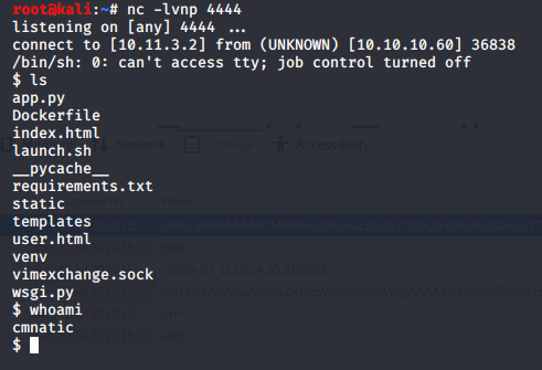 8. Refresh the page. It will hang, refer back to your netcat listener: