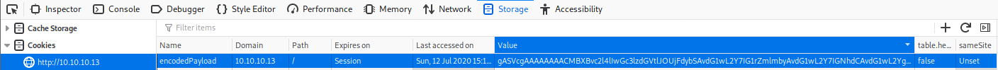 6. Paste this into the "encodedPayload" cookie in your browser: