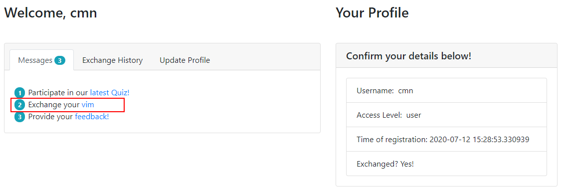 2. Then, left-click on the URL in "Exhange your vim" found in the screenshot below.