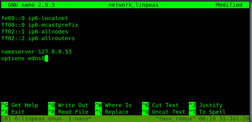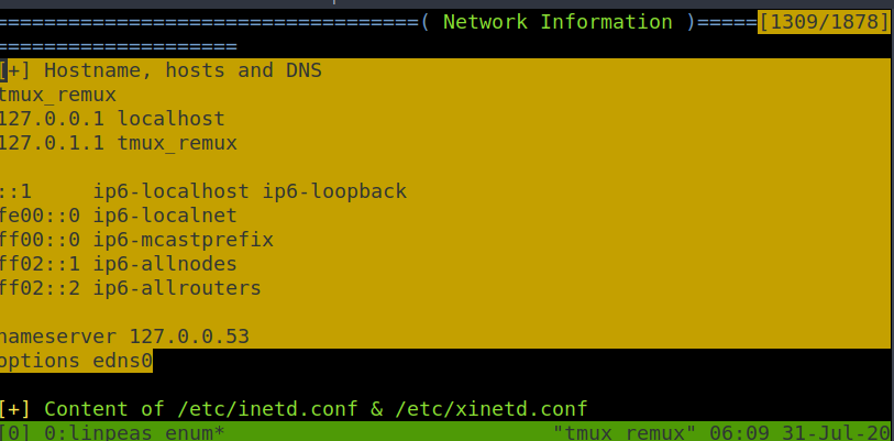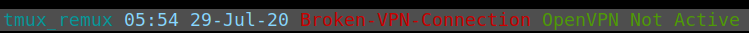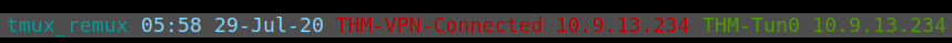 Hope you enjoyed my first room. This script was created while testing the Tmux Remux room. Where the network interfaces will be checked for the OpenVPN network interface name of "tun0". If "tun0" is up. The user's TryHackMe localhost address will be shown at the bottom right of their tmux. If "tun0" is down. An error message will be shown "OpenVPN Not Active". In the bottom right of their tmux.