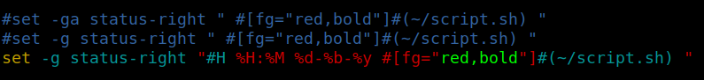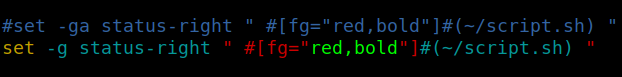 A .tmux.conf reload later and everything is back to normal. Any attempt to reload the .tmux.conf file doesn't print duplicate status-right from the script.sh file.