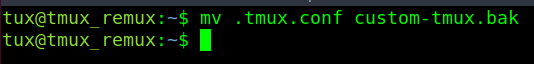 First. Change the .tmux.conf to something new. For example, changing the name from .tmux.conf to custom-tmux.bak