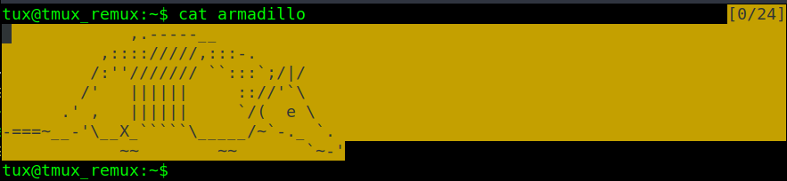 Copy mode can be used to scroll up and down the page. If the text is larger than the length of the pane or window size. To start copy mode. Type ctrl b [ and a number will show up in the top right corner of the current pane or window using copy mode. After scrolling. Exit copy mode with the q key.