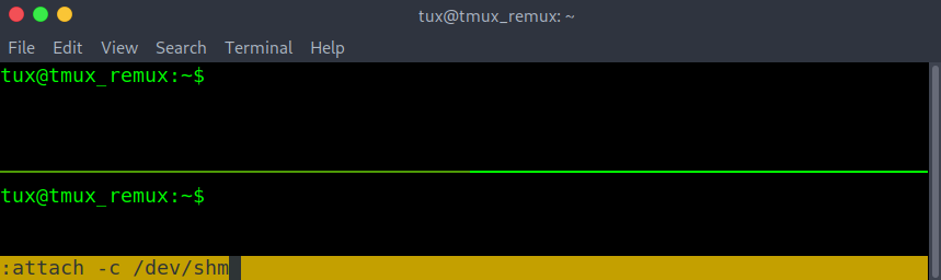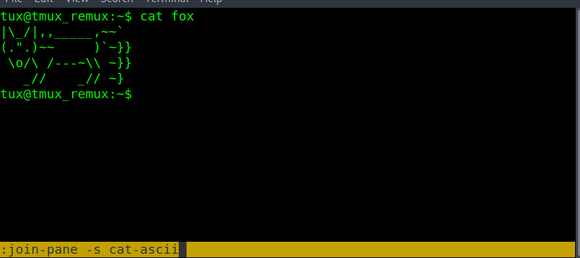 How to fuse two panes together with the "source" window of "bash"? After entering a tmux prompt?