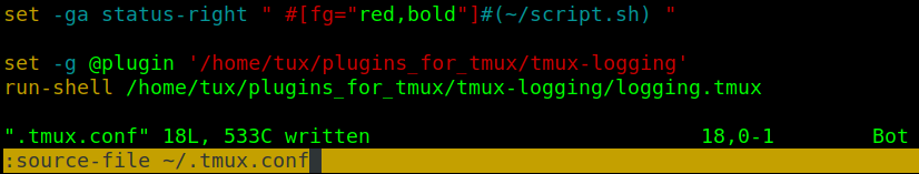 Although there a problem. When reloading the .tmux.conf file. The whoami script.sh from before prints a duplicate string.