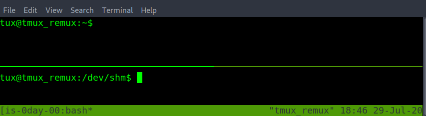 With the updated starting or base directory done above as /dev/shm. Creating a new pane start in the /dev/shm directory.