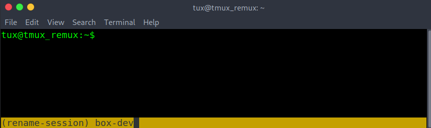 To change the session name from "0" -> "box-dev". Must first learn how tmux is called. All commands within a tmux session all start with the tmux prefix is. By default, the tmux prefix is "Ctrl b".
