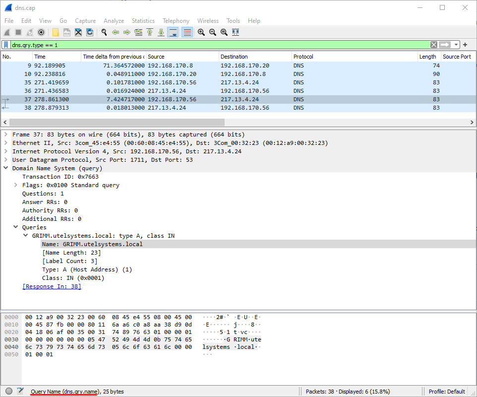 This task uses the dns.cap capture file on the Wireshark SampleCaptures wiki page.
