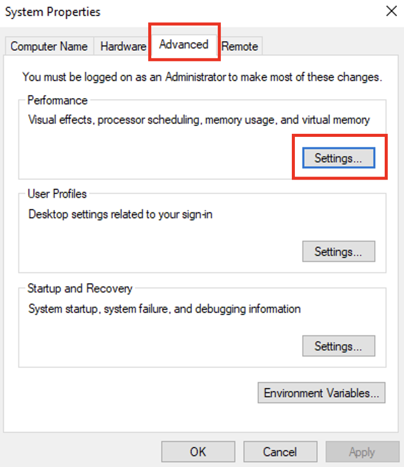 Windows uses a page file as an extra virtual memory space when the physical RAM becomes full. This helps to prevent slowdowns or application crashes when the system runs out of memory. You can view or modify the page file by navigating to the Advanced option at the top and clicking Settings under the Performance tab.